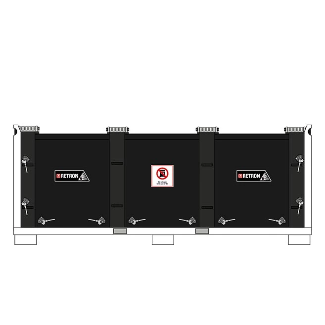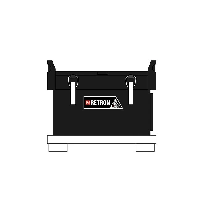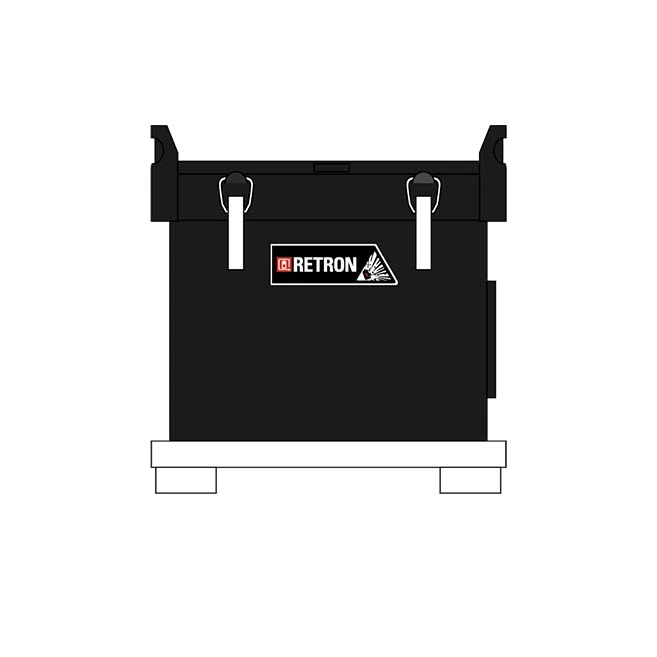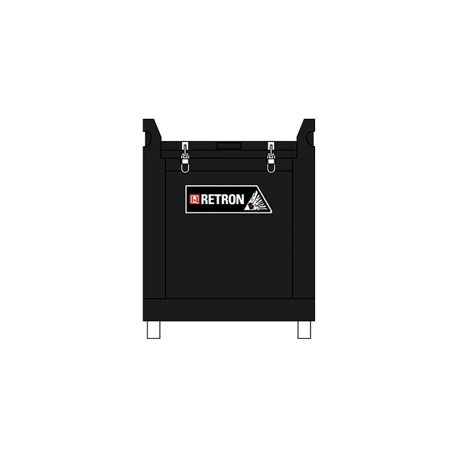 Der RETRON 240 ist das zweitkleinste Mitglied der RETRON Behälterfamilie. Mit seinem Behälterkorpus aus feuerverzinktem Stahl und der 30mm Isolationsschicht dient er zur sicheren Lagerung von kleineren bis mittelgroßen Lithium-Ionen-Batterien. Der 240er ist stapel- und kranbar und kann umlaufend mit Hubwagen unterfahren werden. Zusätzlich ist er, wie alle RETRON Behälter UN-zugelassen und bestens für den gesetzeskonformen Transport von defekten, kritischen und End-of-Life Batterien geeignet.