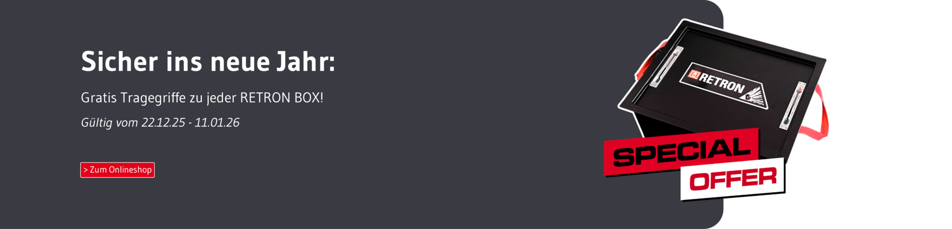 Bestellen Sie die RETRON BOX jetzt bequem online und sorgen für das sichere Laden, Lagern und Transportieren von Lithium-Ionen-Akkus in Ihrem Unternehmen.